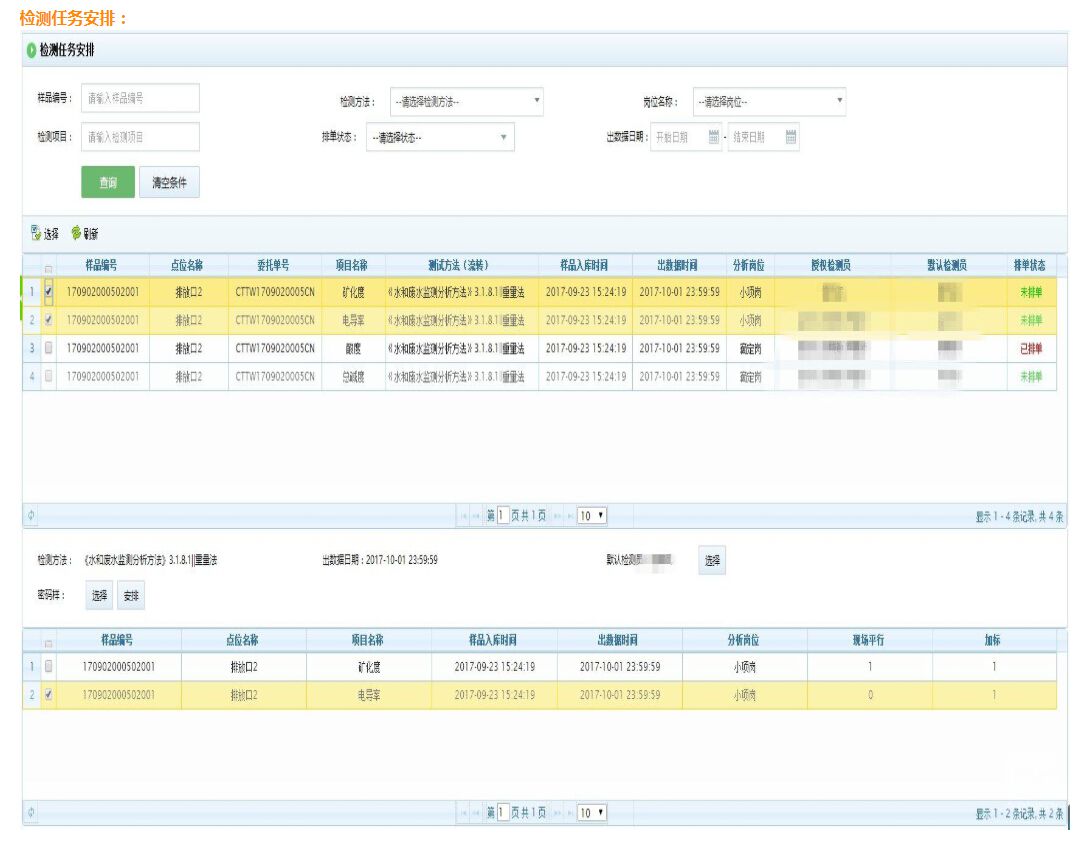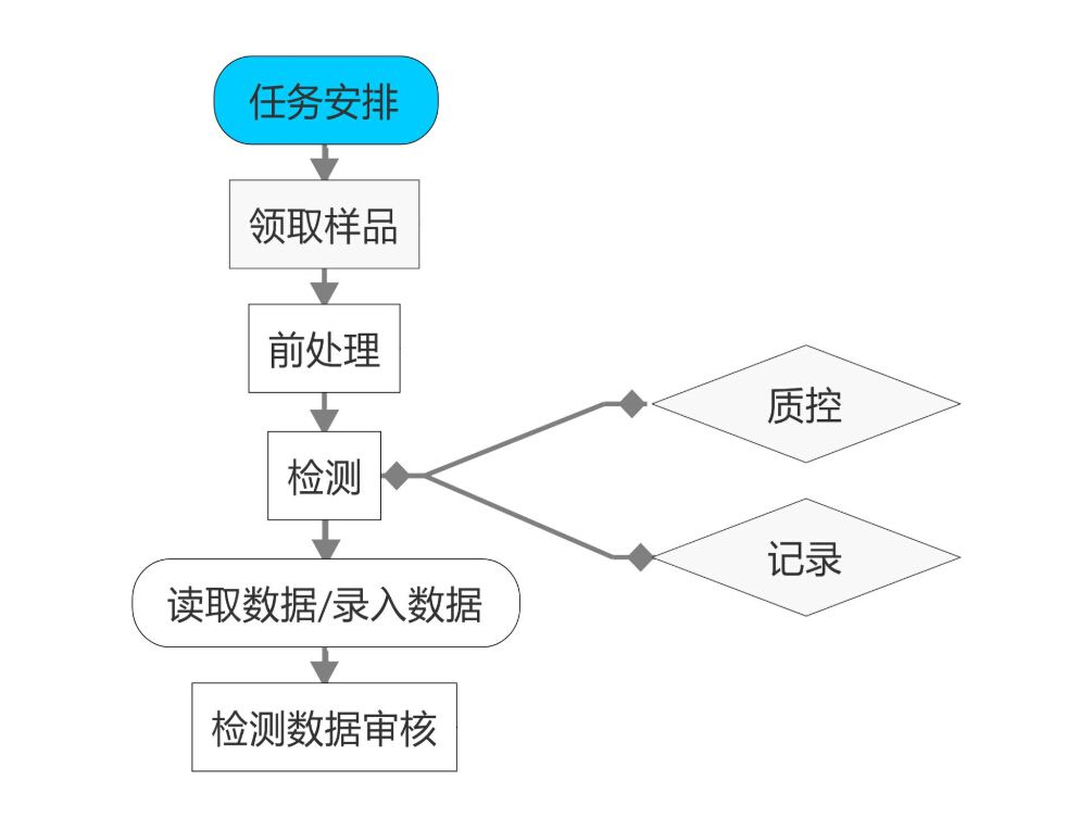 檢測主管根據項目方法要求安排檢測任務,檢測人員檢測結束后處理檢測結果和質控結果,根據質控和檢測結果比較,