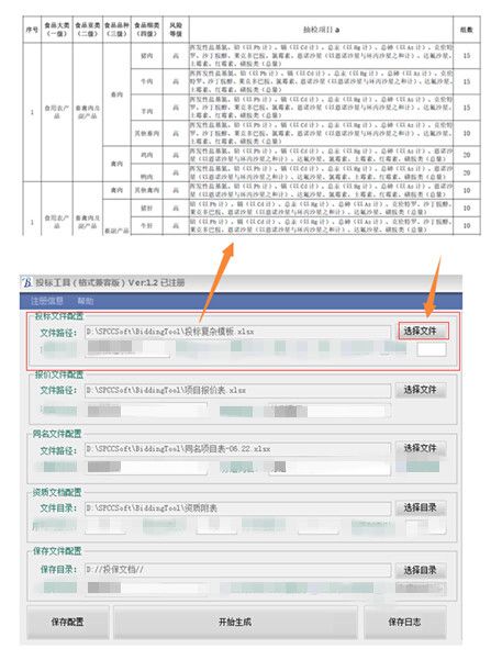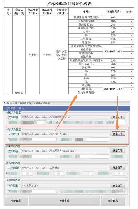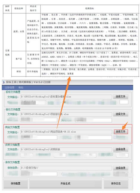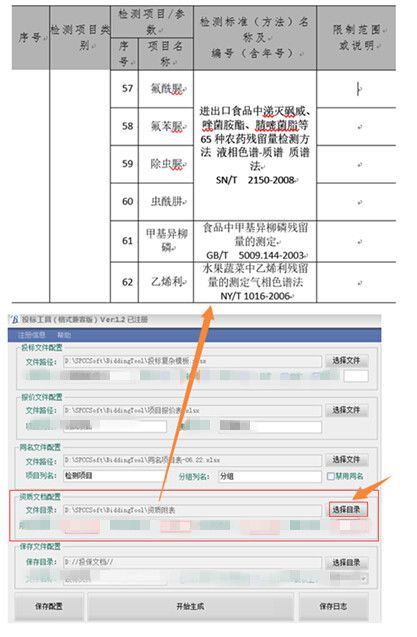 選擇要生成的投標(biāo)文件路徑,然后在“項(xiàng)目列名”中配置投標(biāo)文件中的檢測項(xiàng)目列名,如果投標(biāo)文件中的項(xiàng)目是放在一起用符合隔開的,請選擇分隔符即可;