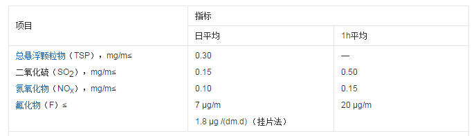 綠色食品產地空氣中各項污染物含量不應超過下列表中的濃度值: